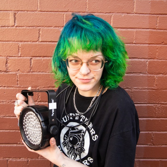 You may know Jen Scaffidi from such theatrical productions as “dancing at the grocery store” and “wait, how does a live stream work.” A songwriter and musician based in Northern Nevada, Jen is enjoying her second year in the puppet band, and has been so fully assimilated into the puppet troupe that puppets have started showing up at her house of their own volition. Or maybe the internet has been sending them? While Jen is away on tour commanding an army of tiny pedalboard robots (or are they commanding her?), the other members of her noise-pop band Blunderbusst wait patiently for her at home. If Jen approaches you in the parking lot, move slowly and speak in low, comforting tones. She’s harmless and probably just wants a hug.